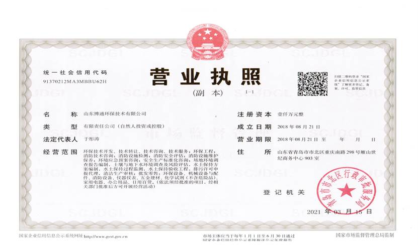 山東博通環(huán)保技術(shù)有限公司是一家專業(yè)從事環(huán)保、安全、消防的多元化技術(shù)服務(wù)公司,公司致力于打造專業(yè)的技術(shù)服務(wù)團(tuán)隊,立足青島,輻射山東,服務(wù)范圍涵蓋:環(huán)保技術(shù)開發(fā)、技術(shù)轉(zhuǎn)讓、技術(shù)咨詢、技術(shù)服務(wù);環(huán)保工程;消防技術(shù)咨詢;消防設(shè)施檢測;消防安全評估;消防設(shè)施維護(hù)保養(yǎng);環(huán)境應(yīng)急預(yù)案咨詢;安全生產(chǎn)標(biāo)準(zhǔn)化咨詢;場地環(huán)境調(diào)查報告編制,土壤與地下水環(huán)境調(diào)查及風(fēng)險評估,水土保持方案編制,水土保持過程監(jiān)測,水土保持驗收工程,排污許可申報代理,清潔生產(chǎn)審核;批發(fā)零售:環(huán)保設(shè)備、機(jī)械設(shè)備與配件、消防設(shè)備、儀器儀表、五金建材、化學(xué)試劑(不含危險品)。公司具有“建設(shè)手續(xù)一站式辦理,安環(huán)問題一條龍解決”的獨特優(yōu)勢,可為客戶提供高效、優(yōu)質(zhì)的安全、環(huán)保、消防管家技術(shù)服務(wù)。